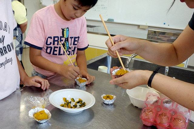 【内容】 フルーツサンドとスイートパンプキンを作りました。参加者は、おいしくできるかなと心配しつつも、出来上がった物を見て食べて感動していました。 【講師・サポーター】 学童くらぶの職員 |