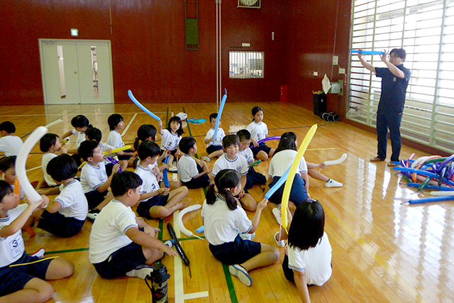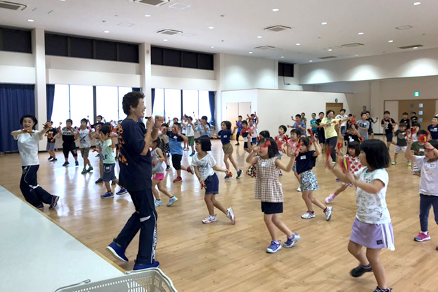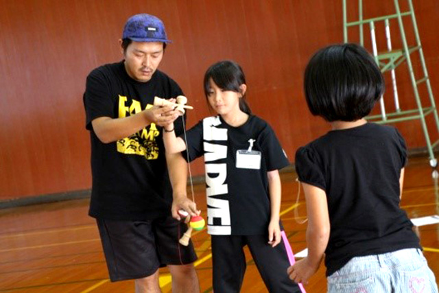 【内容】 講師の模範演技を間近で見た後、参加者も挑戦!チャレンジ精神旺盛で、夢中になって難しい技に取り組んでいました。 【講師・サポーター】 地域おこし協力隊員 |