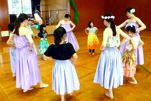 【内容】 センターのフラダンス教室の会員が参加者に指導しながら、楽しく踊りました。踊りだけでなく、レイなどの飾りも作成しました。 【講師・サポーター】 センターで開催しているフラダンス教室の会員 |
