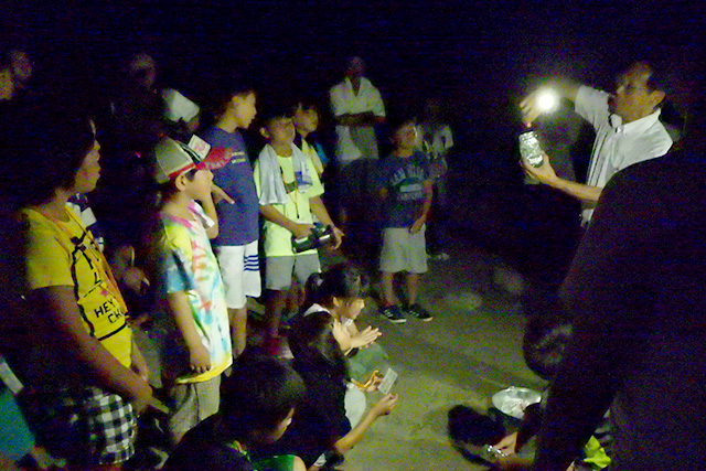 【内容】 紙芝居でレクチャーを行ったのち、海辺に魚肉ソーセージ入りの瓶を投げ、ウミホタルを採集・観察しました。青く光っている様子に、参加者からは歓声が上がっていました。 【講師・サポーター】 小学校教員 |
