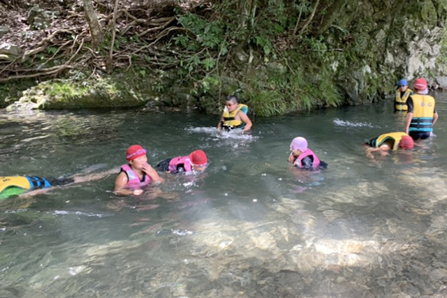 【内容】 ライフジャケットを着用し、地元の川で安全に川遊びを行いました。 |