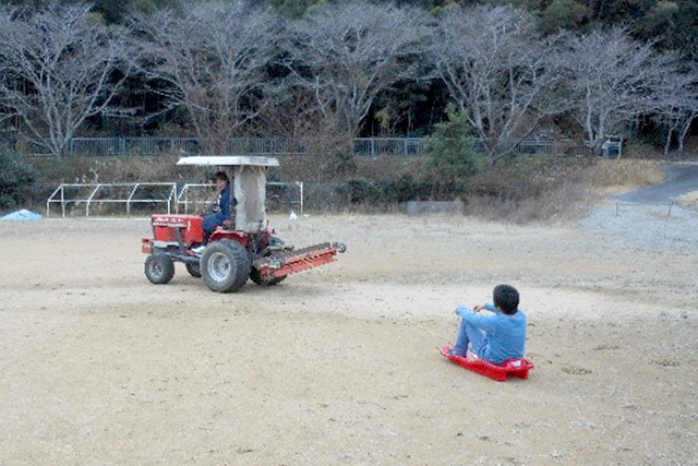 【内容】 トラクターでそりを引っ張り、雪や斜面が無くてもできるそり遊びを行いました。待ち時間中は安全面を考慮しながら異なる遊びをしました。 【講師・サポーター】 センター職員 |