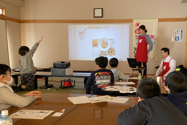 【内容】 (株)ニチレイフーズ白石工場の社員さん方が講師となり、動画とスライドで、冷凍食品が出来るまでの製造過程を学びました。質問タイムでは積極的に質問をする姿が見られました! 【講師・サポーター】 (株)ニチレイフーズ |
