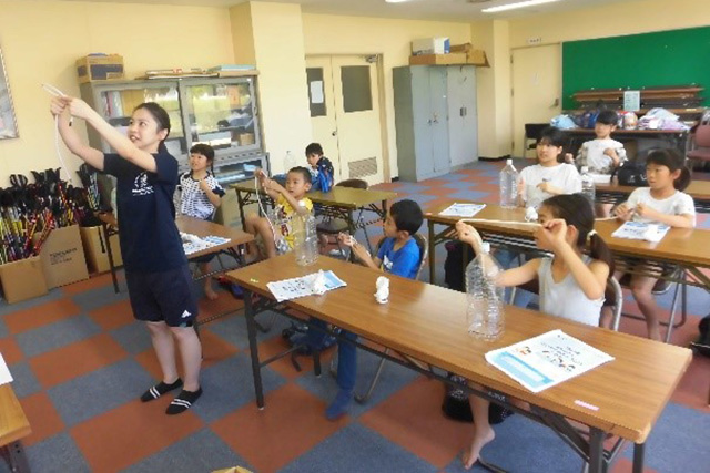 【内容】 ペットボトルと紐を用いてロープワークを行いました。個々の結び方について財団HPに記載されています。 【講師・サポーター】 センター職員 |