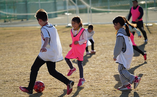 岡野さん:現在は拠点施設の改修工事を計画しており、工事は終わるまで代替施設で運営しているため、施設内がちょっと狭い。思いっきり外で体を動かしてほしいという思いもあり、今回サッカー教室を企画しました。地域に根ざした活動を行っているヴァンフォーレ甲府さんへお願いし、ブラジル出身であるヘナト選手なら、子どもたちと言葉の壁もなくふれあえるのでは? ということと、外国の方が、日本で活躍して生活していく姿を見せてあげられるというのも大きなポイントでした。