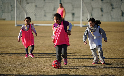 中央拠点の子どもたち全員が広場を走り回り、全力でサッカーを楽しんでいた。この日、小さな体に駆け巡った衝撃や胸の高鳴りは、今後の長い人生において大きな支えになることだろう。