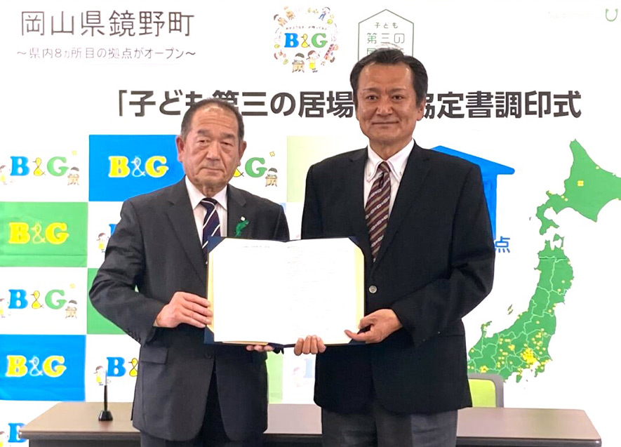 岡山県鏡野町にて、「子ども第三の居場所」事業の協定書調印式・内覧会を行った。