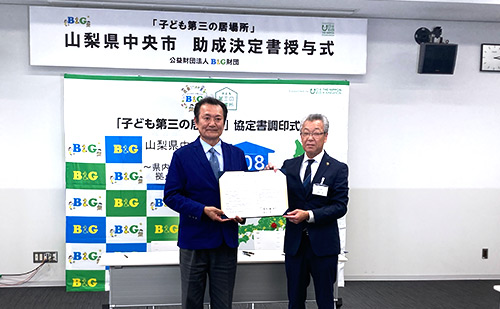 山梨県中央町にて、「子ども第三の居場所」事業の決定書授与式・調印式を行った。