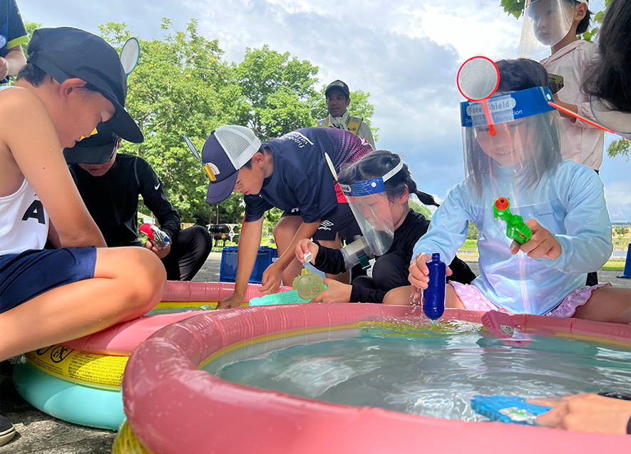参加した児童は、バスで移動し、違う地域の子どもたちと一緒に水辺で遊ぶというたくさんの「はじめて」に出会った。今後も、これから出会う様々な「はじめて」に対して好奇心旺盛に挑戦する気持ちを忘れずに、子どもが持つ生き抜く力をのびのびと育ててほしい。