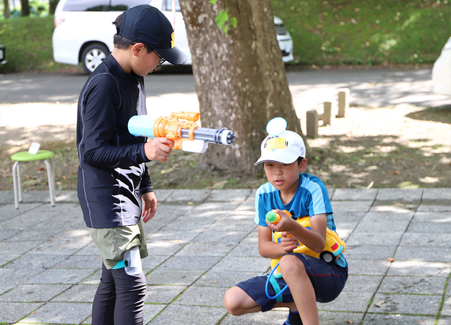 子どもたちは自分の好きなマイ水鉄砲を選んで対戦に挑んだ。