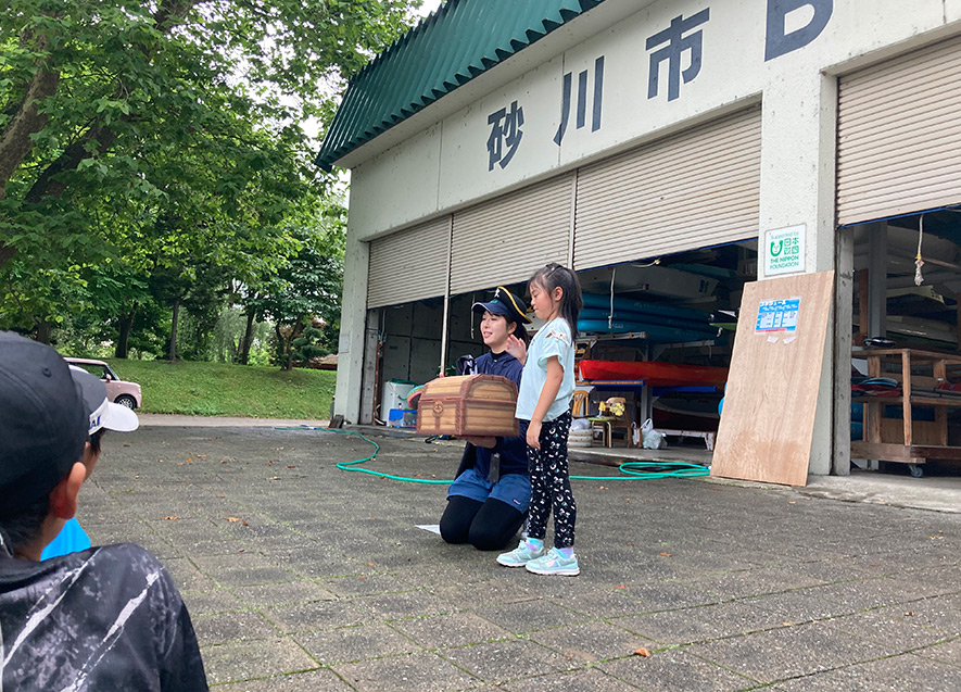子どもたちは『海の航海』『陸の決闘』2つの体験フィールドに隠されている4つのキーワードをすべて見つけて秘密の宝箱を開き、お宝ゲットを目指す。