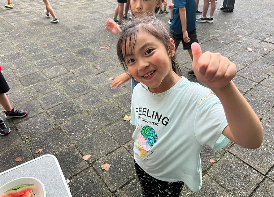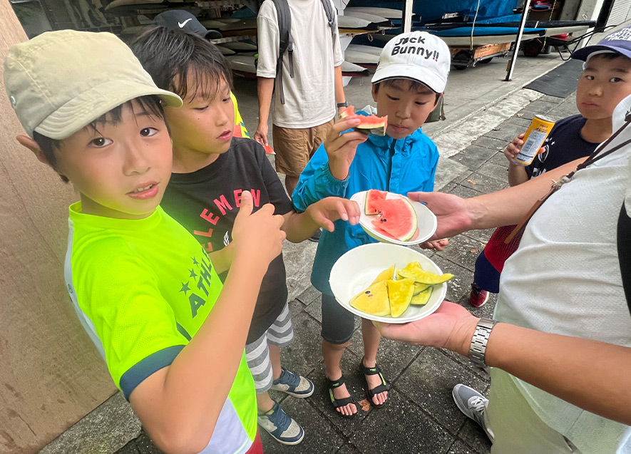 帰りのバスに乗る前にみんなでスイカを食べて(食べられない子は代わりにジュース)、夏を満喫し、夏休みの思い出を作った。