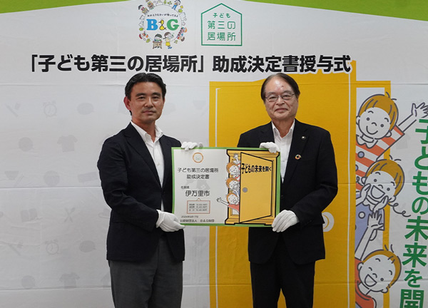 決定書授与式 一、開会のあいさつ 一、挨拶 B&G財団 常務理事 朝日田 智昭 一、助成決定書 授与 一、写真撮影 一、挨拶 伊万里市長 深浦 弘信 一、「子ども第三の居場所」伊万里拠点概要説明 一、報道機関取材・質疑応答 一、閉式 |