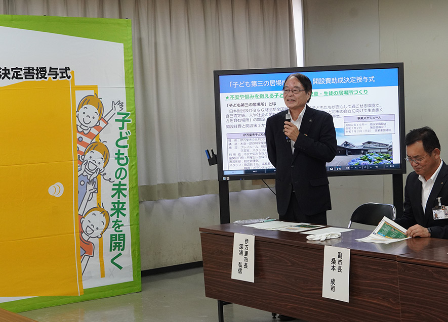 佐賀県伊万里市にて、「子ども第三の居場所」事業の決定書授与式を行った。