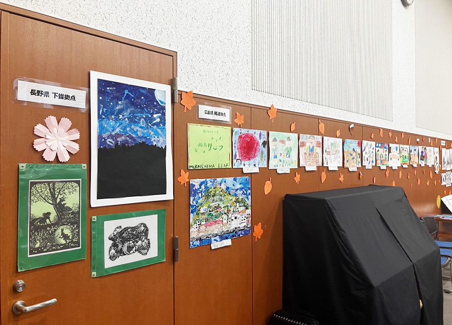 会場に飾られている各拠点の子ども達による作品