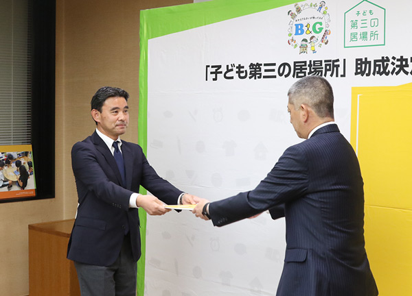 決定書授与式 一、開会のあいさつ 一、挨拶 B&G財団 常務理事 朝日田 智昭 一、助成決定書 授与 一、写真撮影 一、挨拶 洋野町長 岡本 正善 一、「子ども第三の居場所」洋野拠点概要説明 一、報道機関取材・質疑応答 一、閉式 |