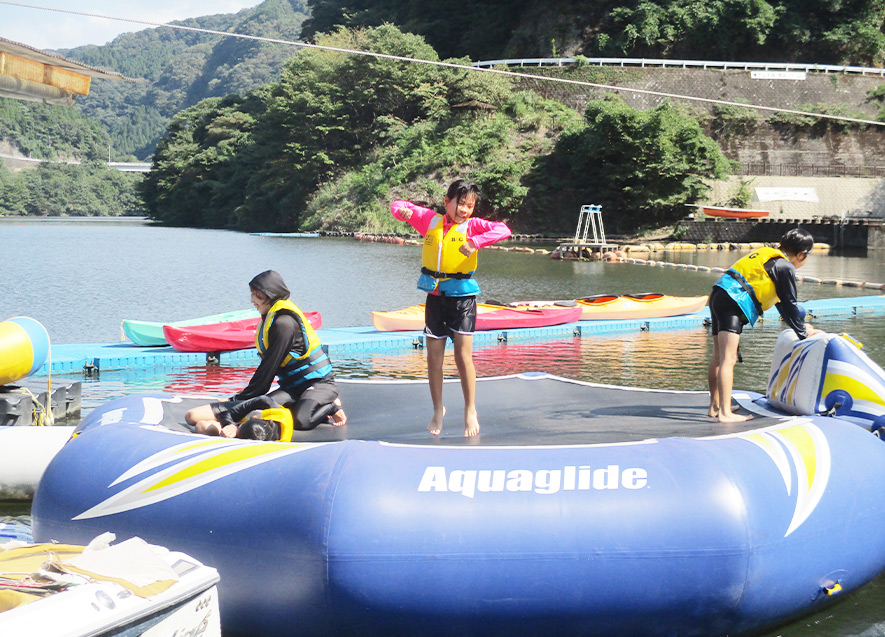 SUPを漕いだり、トランポリンから水に飛び込んで遊んだりと、思う存分楽しんだ。