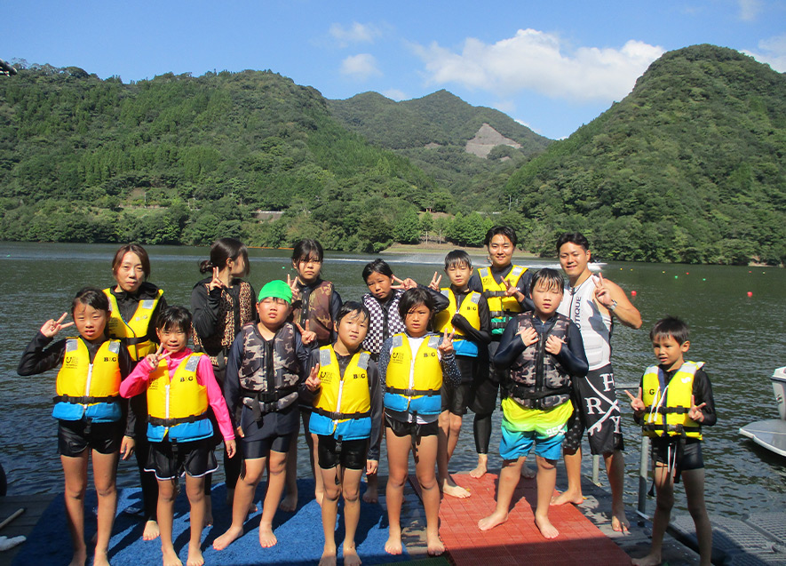 杵築拠点の子どもたちは、中津市耶馬渓B&G海洋センターでマリンスポーツ体験。