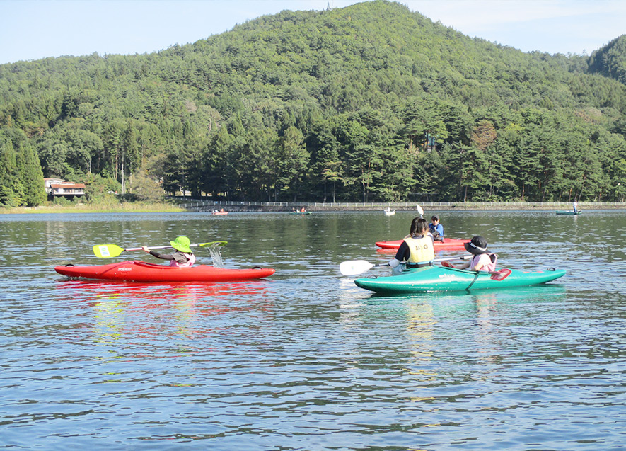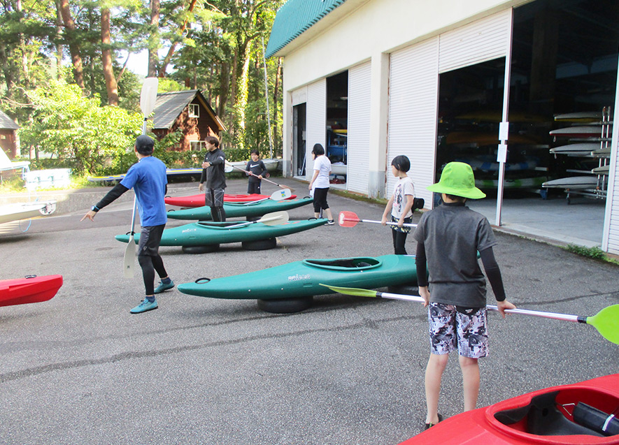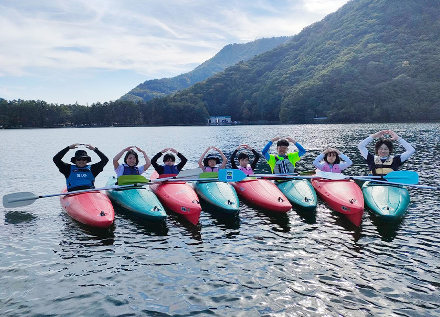 大町の自然を満喫しながら、カヌーで木崎湖を散策し、みんなでカヌーを繋いで記念撮影など、夕方まで時間いっぱい楽しんだ。