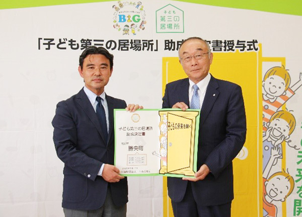 岡山県勝央町にて、「子ども第三の居場所」事業の決定書授与式を行った。