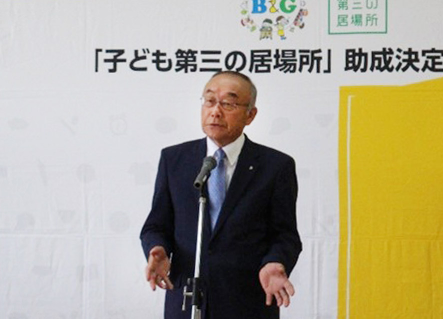 | 式次第 | 一、開会のあいさつ 一、挨拶 B&G財団 常務理事 朝日田 智昭 一、助成決定書 授与 一、写真撮影 一、挨拶 勝央町長 水嶋 淳治 一、「子ども第三の居場所」勝央拠点概要説明 一、報道機関取材・質疑応答 一、閉式 |