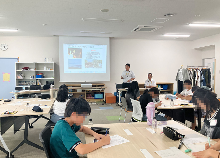 また、中山間地域に位置していることから「棚田」の美しい景観が広がり、四季折々の自然の魅力が楽しめること、さらには町内にある観光スポットについても紹介していただき、子どもたちは改めて自分たちの住む町の魅力に気づく機会となった。