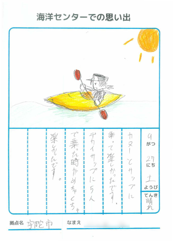 | 実施内容 | 【海洋性レクリエーション体験会】 ・水辺の安全教室 ・カヌー ・ヨット ・SUP、BIG SUP |