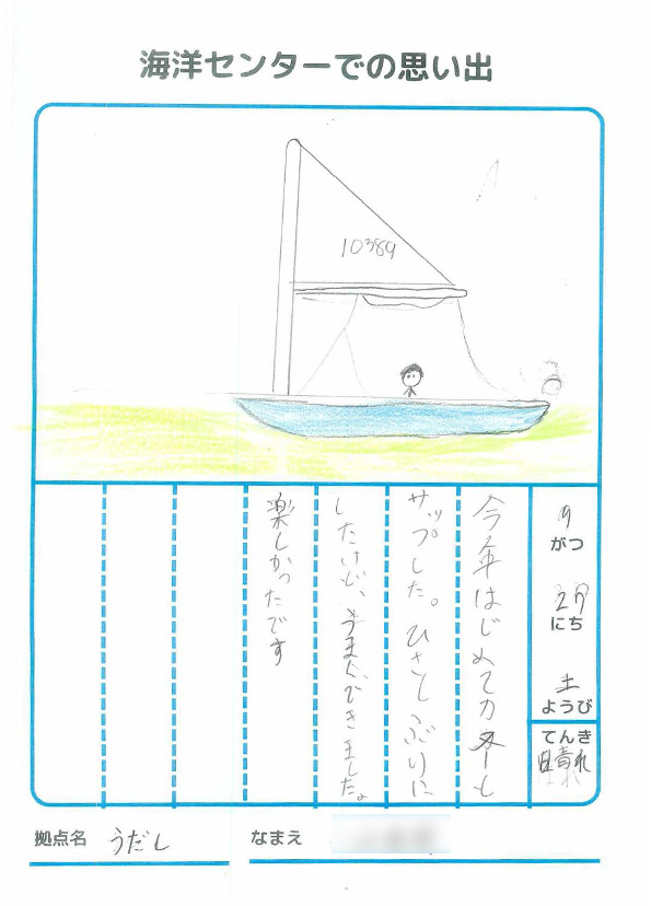 次は、海洋センタースタッフに同乗してもらい、初めてのヨット体験。風の力を受けて進むヨットに、子どもたちはカヌーとはまた違う楽しさを体感し、感動の表情を浮かべていた。