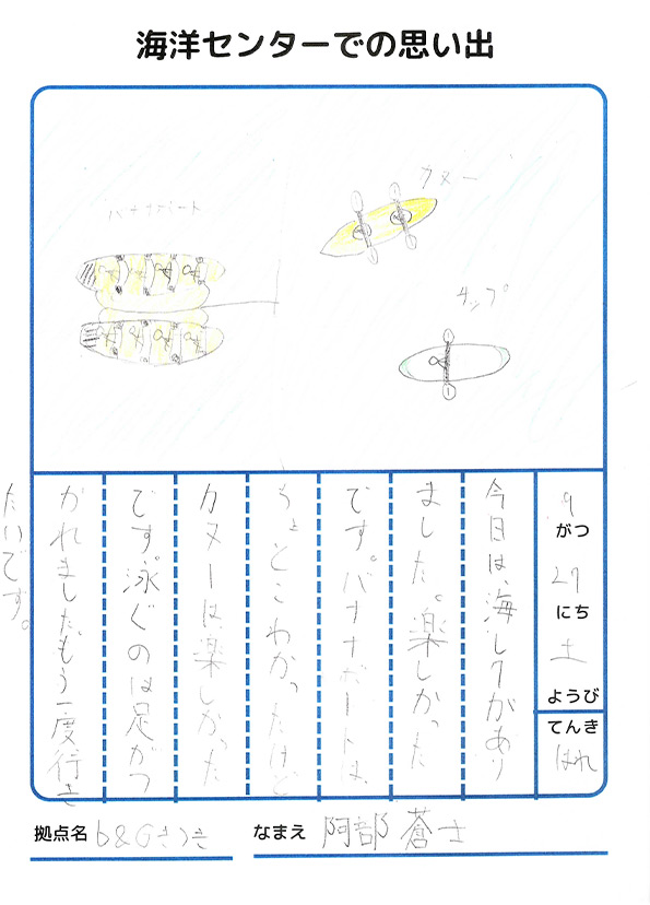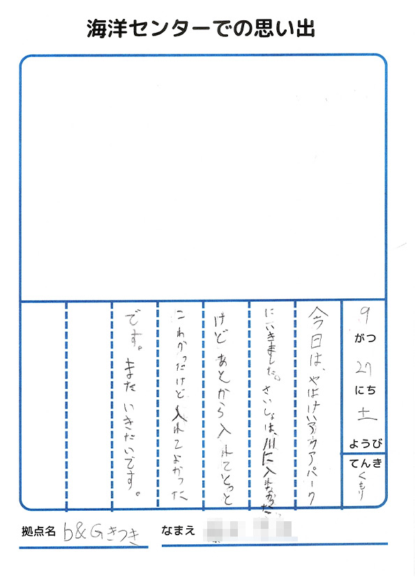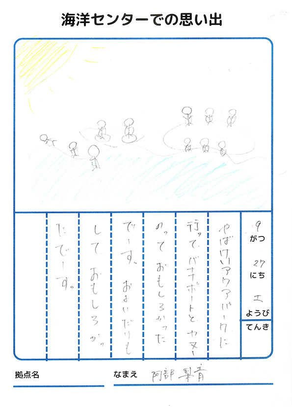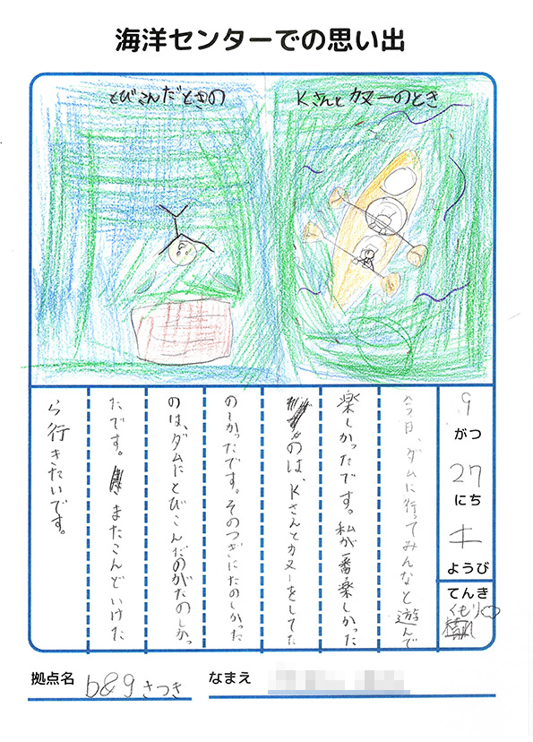 また、拠点スタッフからは、子どもたちはこの日を心待ちにしており、日頃なかなか見られない笑顔をたくさん見ることができた。昨年は水に入れなかった子が、今年は「みんなと泳ぎたい」と挑戦する姿もあり、継続したこれまでの体験が確実に子どもたちの成長につながっていると実感したとの感想をいただいた。