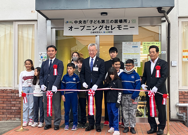 | 式次第 | 一、開会 一、主催者あいさつ(中央市長 望月 智 氏) 一、来賓祝辞(B&G財団 常務理事 朝日田 智昭) (中央市議会議長 金丸 俊明 氏) 一、来賓紹介 一、事業概要及び活動内容説明 一、スタッフ紹介 一、テープカット 一、開所イベント(子どもたちへ記念品贈呈) 一、記念撮影 一、拠点内覧会 一、報道機関取材・質疑応答 |