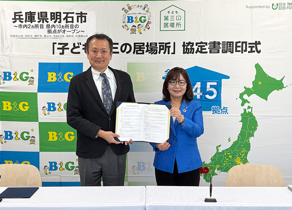 兵庫県明石市にて、市内2拠点目となる「子ども第三の居場所」事業の協定書調印式・内覧会を行った。