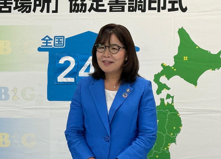 | 式次第 | 【協定書調印式】 一、開会のあいさつ 一、挨拶 B&G財団 理事長 一、挨拶 明石市長 丸谷 聡子 一、協定書調印 一、写真撮影 一、「子ども第三の居場所」明石拠点概要説明 (明石市こども政策課長 福井氏) 一、報道機関取材・質疑応答 【終了後】 施設内覧会 |