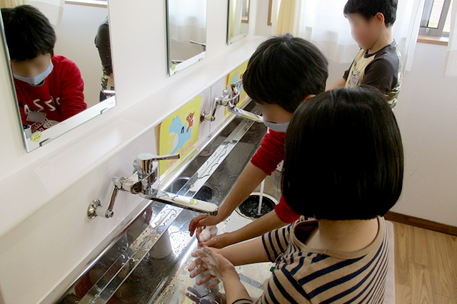 まず、拠点では衛生面で徹底した管理を行いながら、日々活動をしています。手洗い・うがい、消毒はもちろんのこと、室内の換気、食事や学習の際には一定の距離を取るなど、利用児童やスタッフへの感染リスクを避けるよう、細心の注意を払っています。