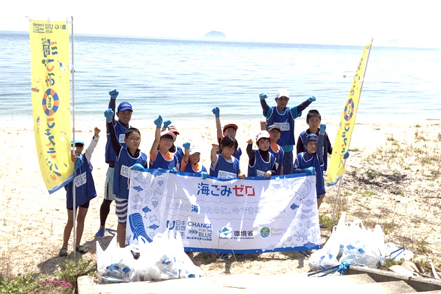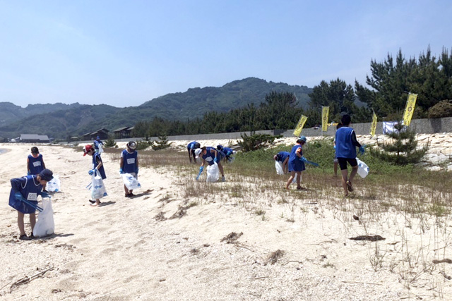 愛媛県松山市のB&G中島海洋クラブは、全国一斉清掃活動「海ごみ0(ゼロ)フェスティバル」に参加、5月25日、松山市姫ヶ浜海水浴場での清掃活動を実施しました。B&G中島海洋クラブ員とその保護者ら20人が、今年初めての海の活動に合わせて真夏のような暑さの中、約40分をかけて浜辺のゴミ拾いを行いました。また、事前に海ごみ問題についてのレクチャーも行い、海洋汚染問題についての理解も深めました。