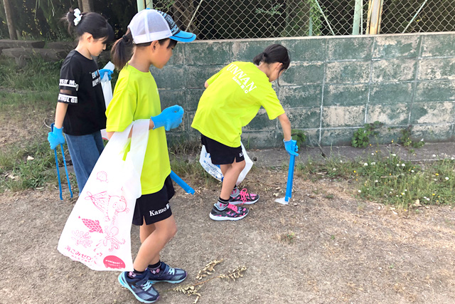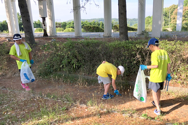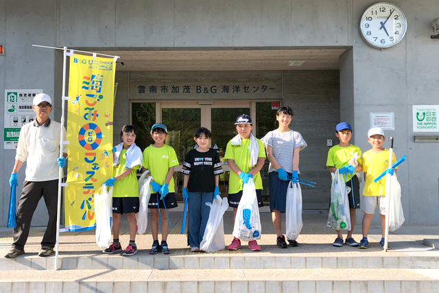 同イベントは、B&G財団が、日本財団と環境省の共同事業である海ごみ対策プロジェクトに賛同し、全国のB&G海洋センター・海洋クラブと共に実施しているものです。雲南市加茂B&G海洋センターでは、日頃活動している海洋センター周辺で、選手育成クラスの水泳練習前にごみ拾いを実施、今後は定期的にごみ拾い活動を行っていきたい考えです。子供たちは、可燃ごみと不燃ごみの違いなどを確認しながら、楽しそうにごみ拾いを行っていました。