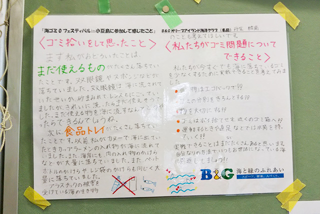 梅原さんは「海をきれいにするには、継続した活動でなければならない。自分たちの活動により、子どもだけでなく大人にも、一緒に海を守る意識を持ってもらいたい。今後も工夫した活動を行っていきたい。」と意気込みを語ってくれました。