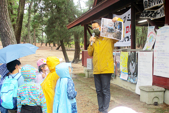 北栄町北条海洋センターでは、海ごみゼロフェスティバルに併せ、海ごみ問題について考える学習会「地球教室」を開催。鳥取県地球温暖化防止活動推進センター職員の方と、海をきれいにする方法や北栄町のゴミリサイクルについて学びました。その後、大人と子どもがペアになり「おもしろゴミひろった選手権 海岸清掃をしよう!」と題し、地元の企業・各種団体などと一緒に海岸清掃を行いました。