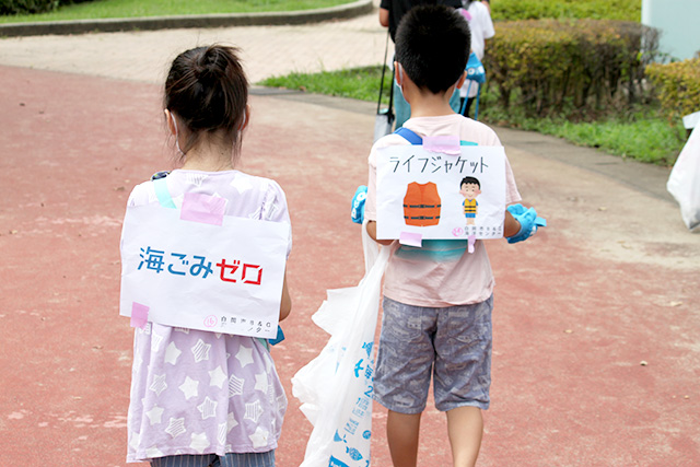 「海が身近にない地域でも、街中で発生した陸上由来のごみが河川を通じて海に流れ込んでしまう恐れがある。地元の子ども達にも、海ごみ問題を知ってもらいたい。」という指導者の方々の想いによるユニークなイベントとなり、参加した子ども達も楽しみながらゴミ拾いをしてくれました。