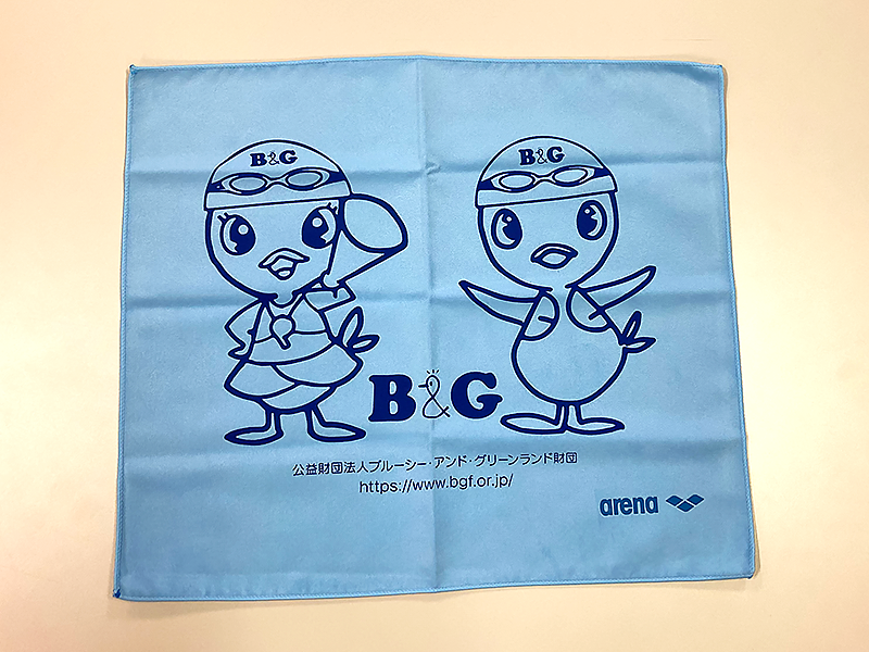 実施にあたり、デサントジャパン株式会社が運営する水着ブランド「アリーナ(arena)」が取り組むTHANKS TO WATERプロジェクトの協賛を得て、特製のB&Gオリジナルセームタオルを提供いただきました。