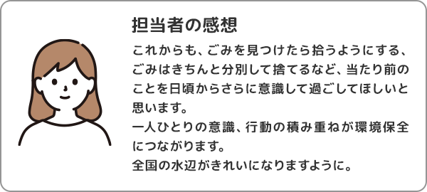 今後も海ごみゼロフェスティバルを通して、全国の海洋センター、海洋クラブと連携しながら海洋ごみ対策に取り組んでいきます。