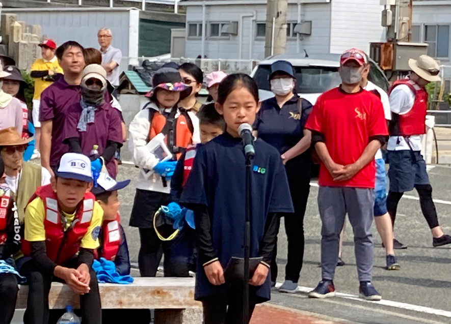 続いて、小豆島海上保安署 大野 潤 次長は「小豆島の海が青く美しくきれいなのは、皆さんの地道な活動の賜物であり心から感謝している。今後も美しい海を子どもたちに引き継げるようご協力をお願いしたい」と述べた。