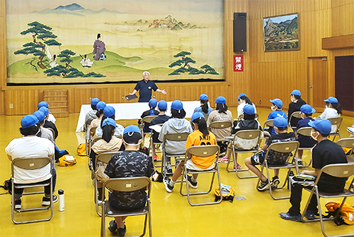事前にマンガ「田沼意次物語」を読んで史料館を訪れた児童30人は、田沼意次候生誕300年記念事業実行委員会 河野研司委員長、マンガ家 杏崎もりか氏、シナリオライター 牧之原市教育長職務代理者澤田衛氏、あらすじ担当 牧之原市学芸員長谷川倫和氏などのマンガ作成委員と関係者に迎えられました。