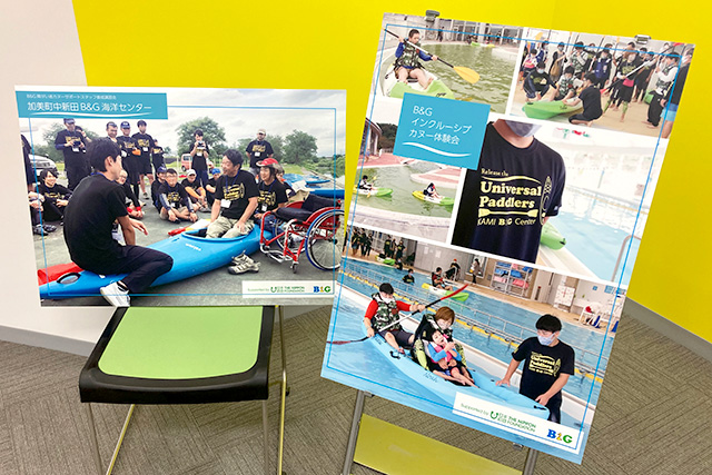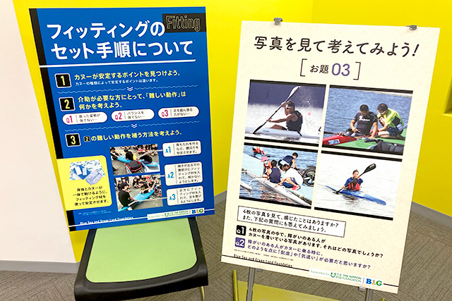 展示が出来るのは海洋センターだけではありません。イーゼルもセットで配備したので、いろいろな場所に展示することで、海洋センターの活動を周知し、カヌーやパラスポーツの啓発にもつながります。また、パネルを展示するだけでもあたたかみが感じられ、インテリアやエクステリアにもなります。