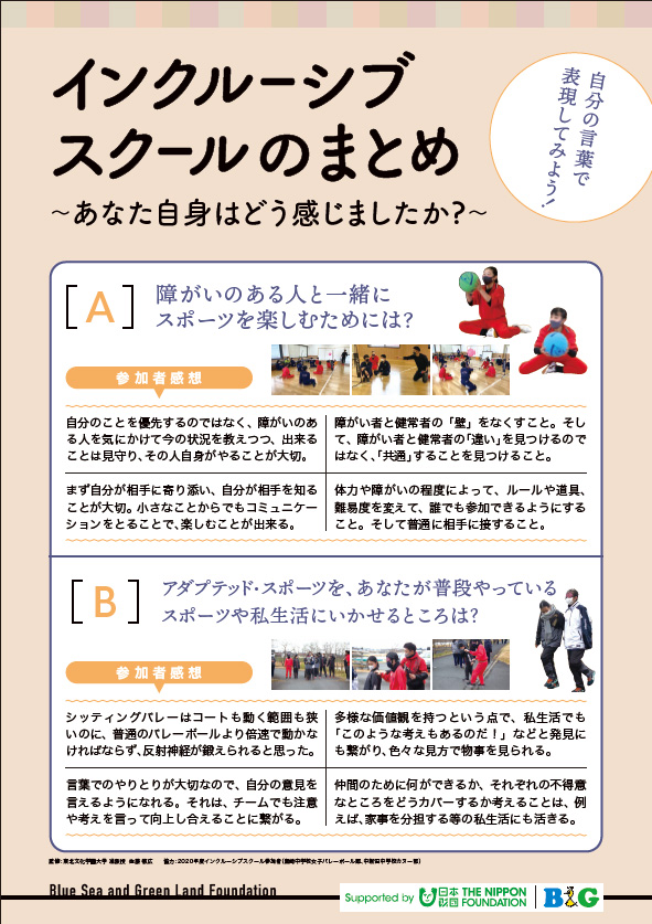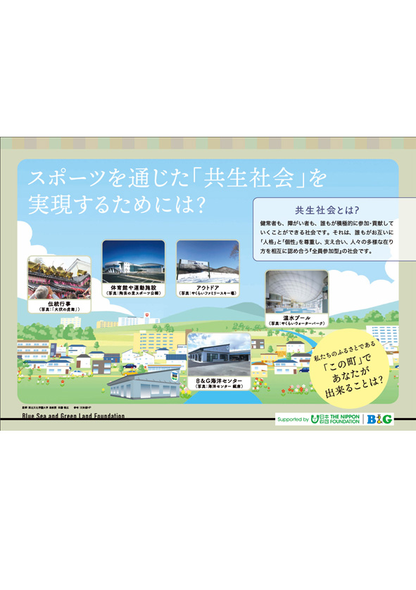 加美町中新田B&G海洋センターでは、インクルーシブな施設活用と共生社会の実現に向けて、地元の中学生にインクルーシブ教育の授業を行っています。授業の際に活用できるパネルを製作しました。