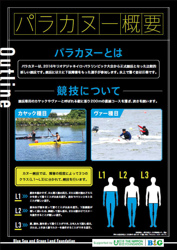 パラカヌーの概要やパラカヌー競技における障害の程度に合わせて3つのクラスに分かれることを紹介