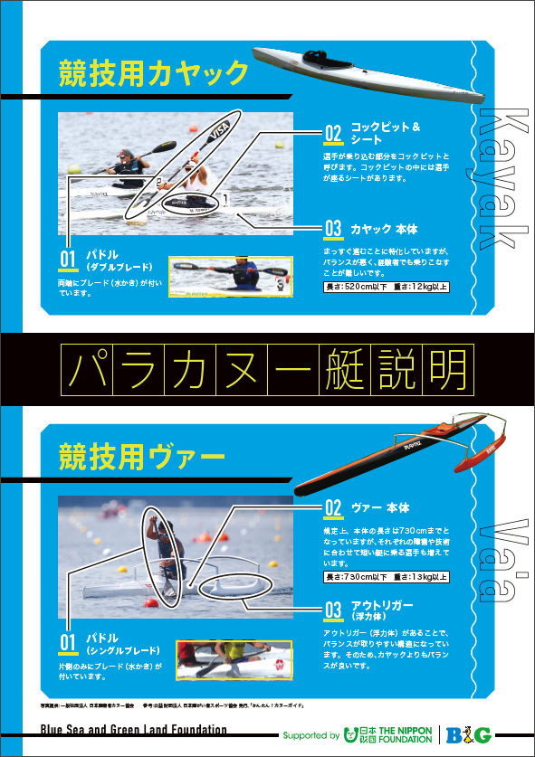 パラカヌーの競技は、カヤックとヴァ―に分かれます。それぞれの艇の概要や特徴を紹介
