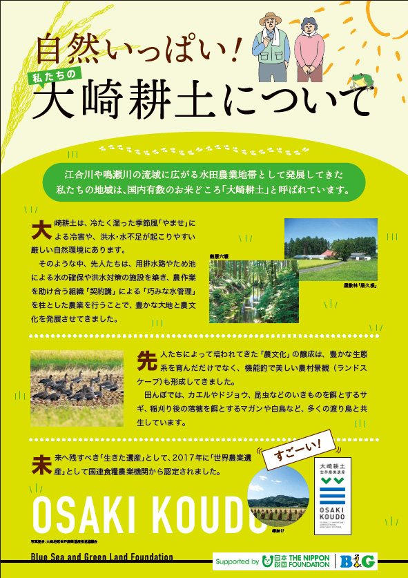 世界農業遺産に認定された大崎耕土を紹介。海洋センターにおけるカヌー活動水面も対象地区になっている