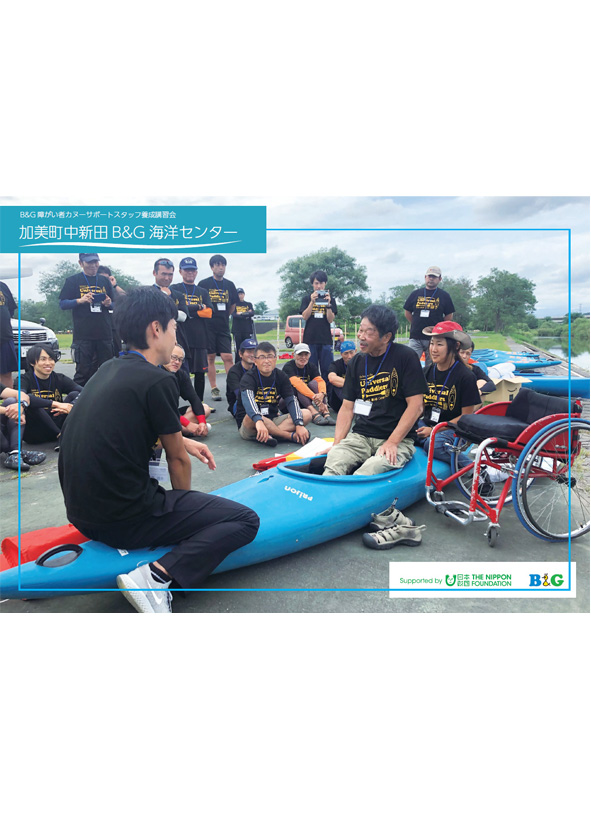 B&G財団では、海洋センター艇庫を活用した地方の魅力創生事業を実施しています。その実施自治体の一つである宮城県加美町では、「障がい者」「パラカヌー」「インクルーシブ」などを大きなテーマとして推進し、カヌー体験会やパラスポーツ教室をはじめ、各種運動教室を周辺環境を活かして実施しています。