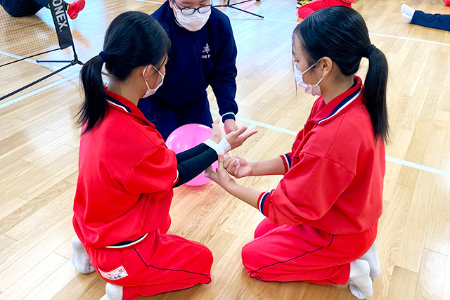 生徒たちは、パラリンピックや障がい者スポーツの歴史について講義を受けた後、シッティングバレーを体験。体験後には下肢障がい者を交えて障害の有無にかかわらずスポーツを楽しめる方法をディスカッションし、パラスポーツを通じた共生社会の実現について学びました。