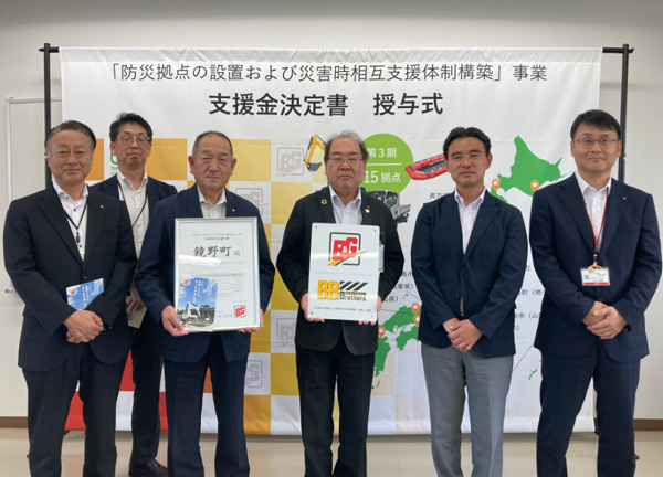 岡山県鏡野町で「防災拠点の設置および災害時相互支援体制構築」事業の決定書授与式を行った。